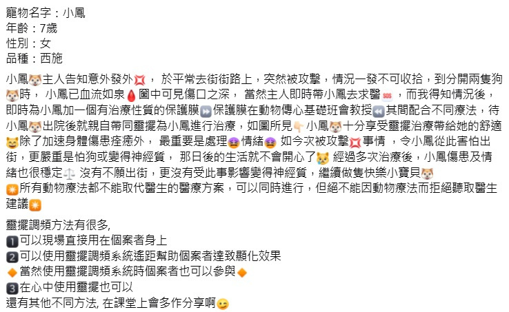 2025年4月12日(星期六) 靈擺療法之動物療法課程