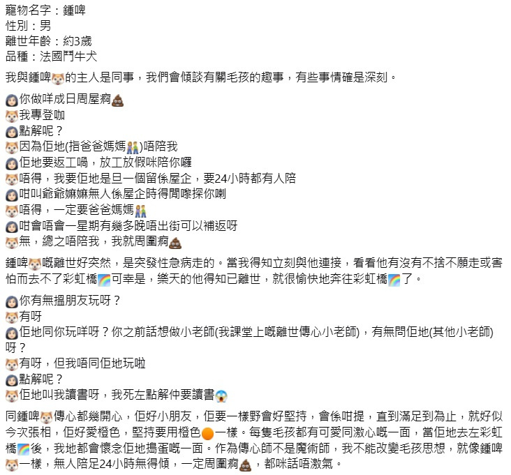 有好多不解嘅情況,透過傳心課程,可以自己直接與愛寵溝通,盡快解決問題,過返啲開開心心生活